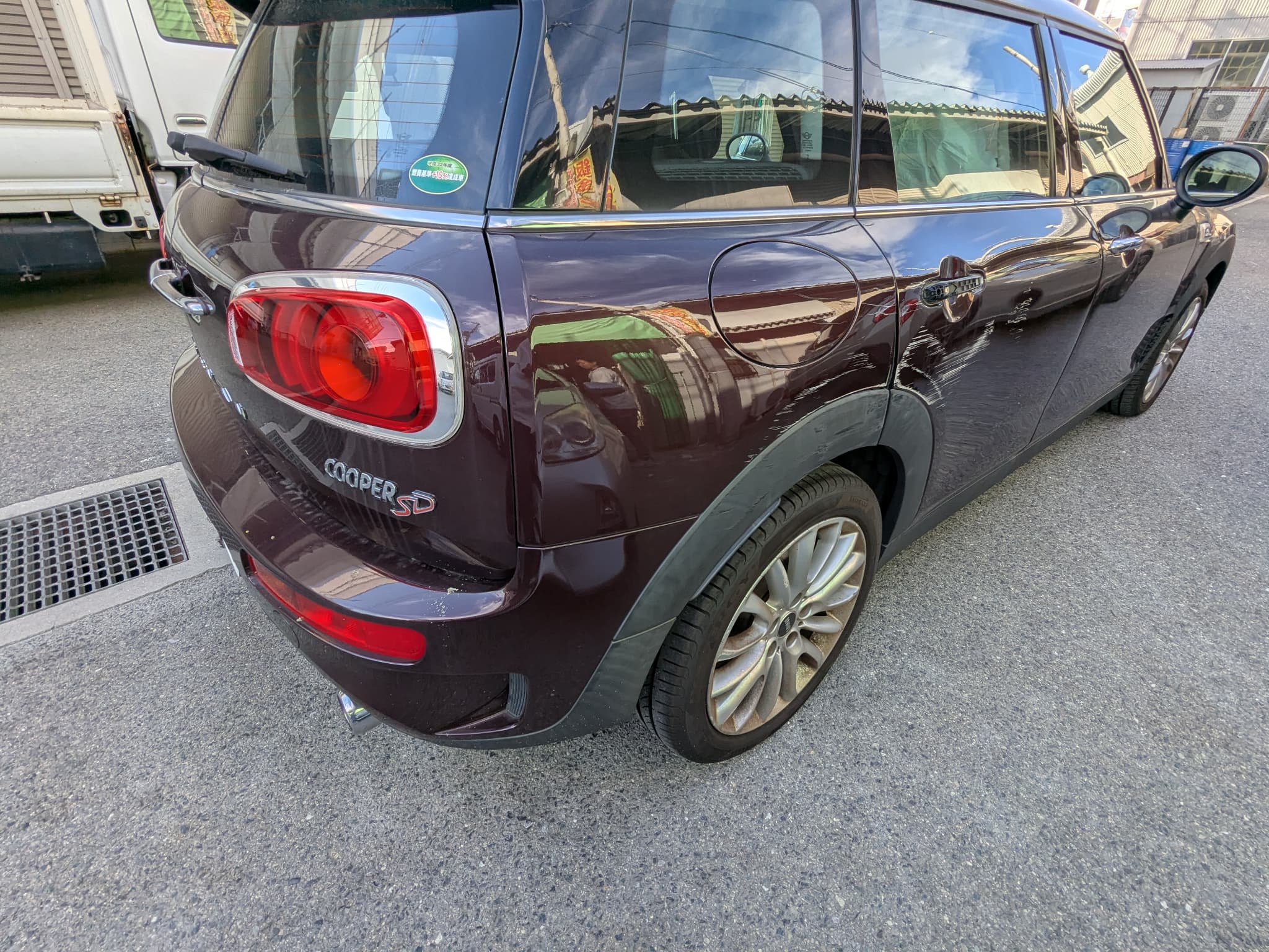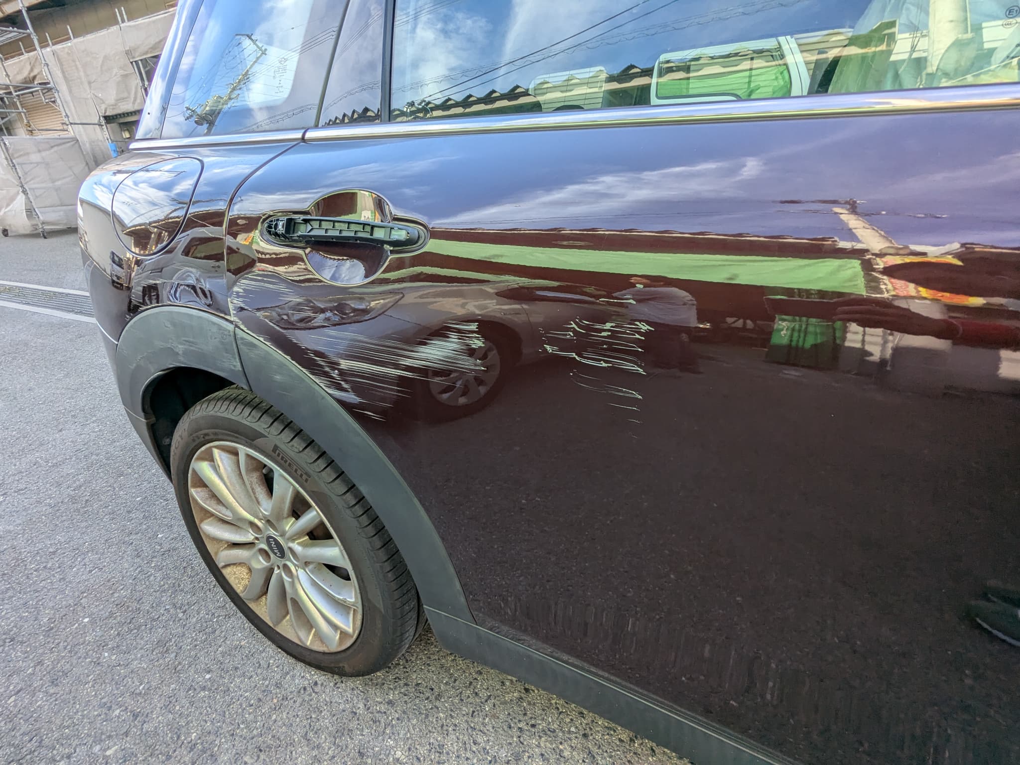 Before After 修理前の状況 右リアドア へこみ 右リアフェンダー へこみ フロントバンパー 左側 えぐれ傷 基本情報 対応車種 BMW ミニクラブマン 費用目安 30 地域 大阪市北区 施工中の写真